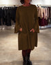 SPECIFICATIONS Style: Casual Material: Cotton Blends Dress Type: Shift dress Dress Length: Knee Length Neckline: Round Neck Pattern Type: Solid Color Sleeve Type: Flare Sleeve Sleeve Length: Long Sleeve Details: Shirred Fit Type: Regular Season: Fall,Winter Occasion: Daily Package Includes: 1 x Dress SIZE TABLE Size Bust Length CM ...