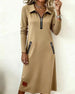 SPECIFICATIONS Style: Casual Material: Cotton Blends Dress Type: Shift dress Dress Length: Midi Neckline: Lapel Pattern Type: Solid Color Sleeve Type: Regular sleeve Sleeve Length: Long Sleeve Details: Pocket,Zipper Fit Type: Regular Season: Fall,Winter Occasion: Daily Package Includes: 1 x Dress SIZE TABLE Size Bust Length CM INCH...