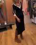 SPECIFICATIONS Style: Casual Material: Cotton Blends Dress Type: Shift dress Dress Length: Midi Neckline: V neck_V Pattern Type: Color Block Sleeve Type: Regular sleeve Sleeve Length: 3/4 Sleeve Fit Type: Regular Season: Spring, Fall, Winter Occasion: Daily, Vacation Package Includes: 1 x Dress SIZE TABLE Size Bust Length CM INCH CM INC...