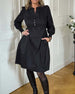 SPECIFICATIONS Style: Casual Material: Cotton Blends Dress Type: A-Line Dress Length: Knee Length Neckline: V neck_V Pattern Type: Solid Color Sleeve Type: Lantern Sleeve Sleeve Length: Long Sleeve Details: Pocket,Buttons Fit Type: Regular Season: Fall,Winter Occasion: Daily,Party Package Includes: 1 x Dress SIZE TABLE Size Bust Leng...