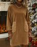 SPECIFICATIONS Style: Casual Material: Velvet Dress Type: Shift dress Dress Length: Knee Length Neckline: High Neck Pattern Type: Solid Color Sleeve Type: Regular sleeve Sleeve Length: Long Sleeve Details: Pocket Fit Type: Regular Season: Fall,Winter Occasion: Daily Package Includes: 1 x Dress SIZE TABLE Size Bust Length CM IN...