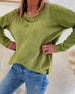 V-Neck Button Solid Color Pullover