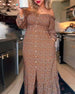 SPECIFICATIONS Style: Casual Material: Cotton Blends Dress Type: A-Line Dress Length: Maxi Neckline: V neck_V Pattern Type: Print Sleeve Type: Regular sleeve Sleeve Length: Long Sleeve Details: Pocket,Buttons,Shirred Fit Type: Regular Season: Spring,Fall,Winter Occasion: Daily Package Includes: 1 x Dress SIZE TABLE Size Bust Length C...
