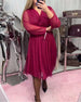 SPECIFICATIONS Style: Casual Material: Cotton Blends Dress Type: Shift dress Dress Length: Midi Neckline: V neck_V Pattern Type: Solid Color Sleeve Type: Regular sleeve Sleeve Length: Long Sleeve Details: Bowknot Season: Fall,Winter Occasion: Daily Package Includes: 1 x Dress SIZE TABLE Size Bust Length CM INCH CM INCH S 97 38.19 ...
