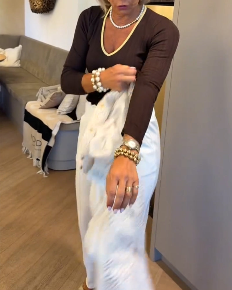 NEW Icon1 Contrast Color V-Neck Fashionable Top