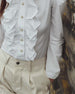 Ruffled Long-Sleeved Solid-Color Collared Blouse