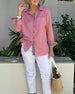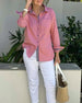 Casual Button-Down V-Neck Long-Sleeved Top