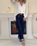 Long-Sleeved V-Neck Casual Blouse