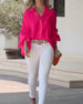 V-Neck Flared Sleeve Elegant Blouse