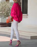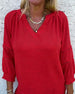 Three-Quarter Sleeve V-Neck Loose Top