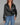 Ruffle V-Neck Denim Blouse