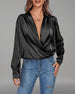 Satin Draped Neck Short-Sleeve Blouse