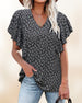 SPECIFICATIONS Top Type: Blouses Style: Casual Material: Spandex Occasion: Daily Neckline: V neck_V Pattern Type: Floral, Print Sleeve Type: Ruffle Sleeve Sleeve Length: Short Sleeve Fit Type: Loose Season: Spring, Summer, Fall Package Includes: 1 x Blouse SIZE TABLE (cm) Size Bust Length cm inch cm inch S 100 39.4 65 25.6 ...
