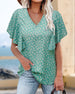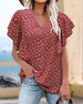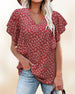V-neck short sleeve printed blouse