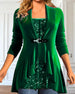 SPECIFICATIONS Top Type: Blouses Style: Casual Material: 95% Polyester, 5% Spandex Occasion: Daily Neckline: Round Neck Sleeve Type: Regular sleeve Sleeve Length: Long Sleeve Fit Type: Regular Season: Fall,Winter Details: Patchwork,Hot Drilling Package Includes: 1 x Blouse SIZE TABLE Size Bust Length Sleeves Shoulder CM INCH CM INCH C...