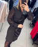 SPECIFICATIONS Style: Chic Material: 95% polyester, 5% spandex Dress Type: Tunic Dress Length: Knee Length Neckline: V neck_V Pattern Type: Sequin, Solid Color Sleeve Type: Regular sleeve Sleeve Length: Long Sleeve Details: Lace Up Fit Type: Regular Season: Fall, Winter Occasion: Daily, Vacation Package Includes: 1 x Dress SIZE TABLE Size...