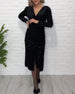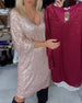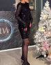 SPECIFICATIONS Style: Party Material: Cotton Blends Dress Type: Bodycon Dress Length: Knee Length Neckline: V neck_V Pattern Type: Sequin Sleeve Type: Regular sleeve Sleeve Length: Long Sleeve Details: Slit Fit Type: Skinny Season: Fall,Winter Occasion: Party Package Includes: 1 x Dress SIZE TABLE Size Bust Length CM INCH CM IN...