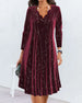 SPECIFICATIONS Style: Elegant Material: A: 100% Polyester; B: 97% Polyester, 3% Spandex Dress Type: A-Line Dress Length: Knee Length Neckline: U Neck_U Pattern Type: Sequin Sleeve Type: Lantern Sleeve Sleeve Length: Long Sleeve Details: Ruffle Fit Type: Regular Season: Fall,Winter Occasion: Daily Package Includes: 1 x Dress SIZE TABLE S...