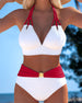 SPECIFICATIONS Style: Vacation Material: 15% Spandex,85% Polyester Occasion: Vacation Neckline: Halter Pattern Type: Color Block Top Type: Bikini Bra Type: Wireless Bra Bottom Type: High Cut Fit Type: Skinny Details: Backless Package Includes: 1 x Bikini SIZE TABLE Size Bust Waist Hip Under bust CM INCH CM INCH CM INCH CM INCH S 88 34.65...