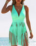 Djup V-Ringad Sexig Baddräkt Med Fransar