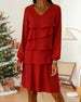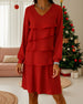 SPECIFICATIONS Style: Casual Material: Cotton Blends Dress Type: Shift dress Dress Length: Above-knee Neckline: V neck_V Pattern Type: Solid Color Sleeve Type: Lantern Sleeve Sleeve Length: Long Sleeve Details: Ruffle Fit Type: Regular Season: Fall,Winter Occasion: Daily Package Includes: 1 x Dress SIZE TABLE Size Bust Length CM I...