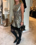 V-Neck Fine Glitter Mesh Patchwork Loose Dress