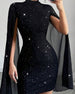 SIZE TABLE CHIC CAPE DESIGN :Adds a touch of drama and sophistication. This unique element creates an elegant, flowing silhouette that moves beautifully with you, ensuring you stand out with a high-fashion look at any event. SPARKLING STARLIGHT PATTERN:Captures the light beautifully for a dazzling effect. The subtle yet eye-catching glitter em...