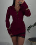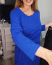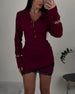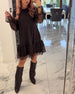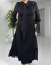 Round Neck Long Sleeves Knotted Waist Dress