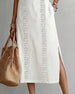 SPECIFICATIONS Style: Casual Material: Cotton Blends Dress Type: A-Line Dress Length: Midi Neckline: Round Neck Pattern Type: Solid Color Sleeve Type: Regular sleeve Sleeve Length: Short Sleeve Details: Slit Fit Type: Regular Season: Spring,Summer Occasion: Daily Package Includes: 1 x Dress SIZE TABLE Size Bust Length CM INCH CM I...