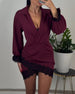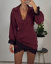 Folded V-Neck Lace Paneled Dress