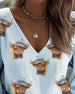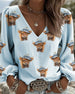 V-Neck Animal Print Puff Sleeve Blouse