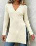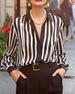 V-Neck Solid Color Striped Top