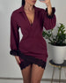Fashionable Solid Color Long-Sleeved Blouse
