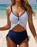 SPECIFICATIONS Style: Vacation Material: 15% Spandex,85% Polyester Occasion: Vacation Neckline: V neck_V Pattern Type: Striped Sleeve Length: Sleeveless Top Type: Bikini Bra Type: Wireless Bra Bottom Type: High Cut Season: Spring,Summer,Fall,Winter Details: Ruffle,Shirred Package Includes: 1 x Bikini SIZE TABLE Size Bust Waist Hip Und...