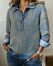 Color-Blocked Button-Down Collar Sweatshirt