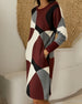 Color-Blocked Fashionable Round Neck Dress