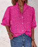 SPECIFICATIONS Top Type: Shirt Style: Casual Material: Cotton Blends Occasion: Daily Neckline: V neck_V Pattern Type: Print Sleeve Type: Puff Sleeve Sleeve Length: 3/4 Sleeve Fit Type: Regular Season: Spring,Summer Details: Buttons Package Includes: 1 x Shirt SIZE TABLE Size Bust Length CM INCH CM INCH S 97 38.19 65 25.59 M 10...