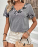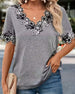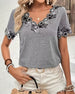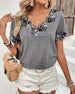 V-Neck Floral Lace Panel T-Shirt