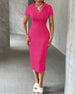 SPECIFICATIONS Style: Casual Material: Cotton Blends Dress Type: Bodycon Dress Length: Midi Neckline: V neck_V Pattern Type: Solid Color Sleeve Type: Regular sleeve Sleeve Length: Short Sleeve Fit Type: Regular Season: Spring,Summer Occasion: Daily Package Includes: 1 x Dress SIZE TABLE Size Bust Length CM INCH CM INCH S 97 37.4 ...