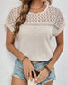SPECIFICATIONS Top Type: T-shirt Style: Casual Material: Cotton Blends Occasion: Daily Neckline: V neck_V Sleeve Type: Regular sleeve Sleeve Length: Short Sleeve Fit Type: Regular Season: Spring,Summer Details: Patchwork,Lace Package Includes: 1 x T-shirt SIZE TABLE Size Bust Length CM INCH CM INCH S 97 38.19 65 25.59 M 101 39...