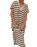 SPECIFICATIONS Style: Casual Material: Cotton Blends Dress Type: Shift dress Dress Length: Midi Neckline: V neck_V Pattern Type: Striped Sleeve Type: Regular sleeve Sleeve Length: Short Sleeve Fit Type: Regular Season: Spring,Summer Occasion: Daily Package Includes: 1 x Dress SIZE TABLE Size Shoulder Bust Length CM INCH CM INCH CM...