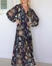 SPECIFICATIONS Style: Casual Material: Cotton Blends Dress Type: A-Line Dress Length: Maxi Neckline: V neck_V Pattern Type: Print Sleeve Type: Lantern Sleeve Sleeve Length: 3/4 Sleeve Fit Type: Regular Season: Spring,Summer Occasion: Daily Package Includes: 1 x Dress SIZE TABLE Size Bust Length CM INCH CM INCH S 104 40.94 120 47.24 ...