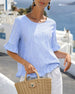 SPECIFICATIONS Top Type: T-shirt Style: Casual Material: Cotton Blends Occasion: Daily Neckline: Round Neck Pattern Type: Solid Color Sleeve Type: Raglan sleeve Sleeve Length: Short Sleeve Fit Type: Regular Season: Spring,Summer Details: Hollow Out Package Includes: 1 x T-shirt SIZE TABLE Size Bust Length CM INCH CM INCH S 90 35....
