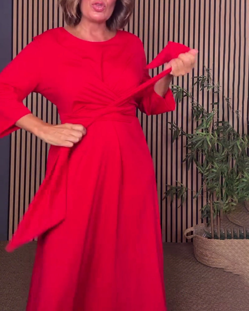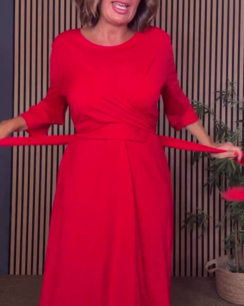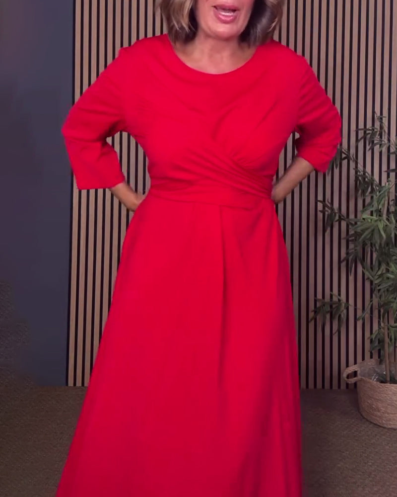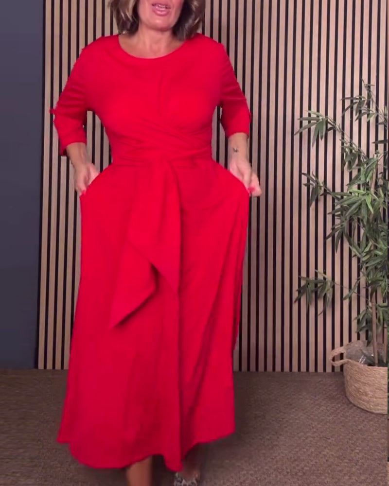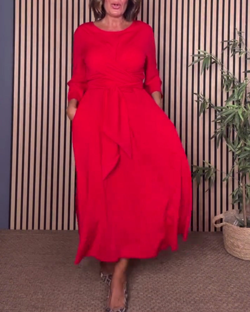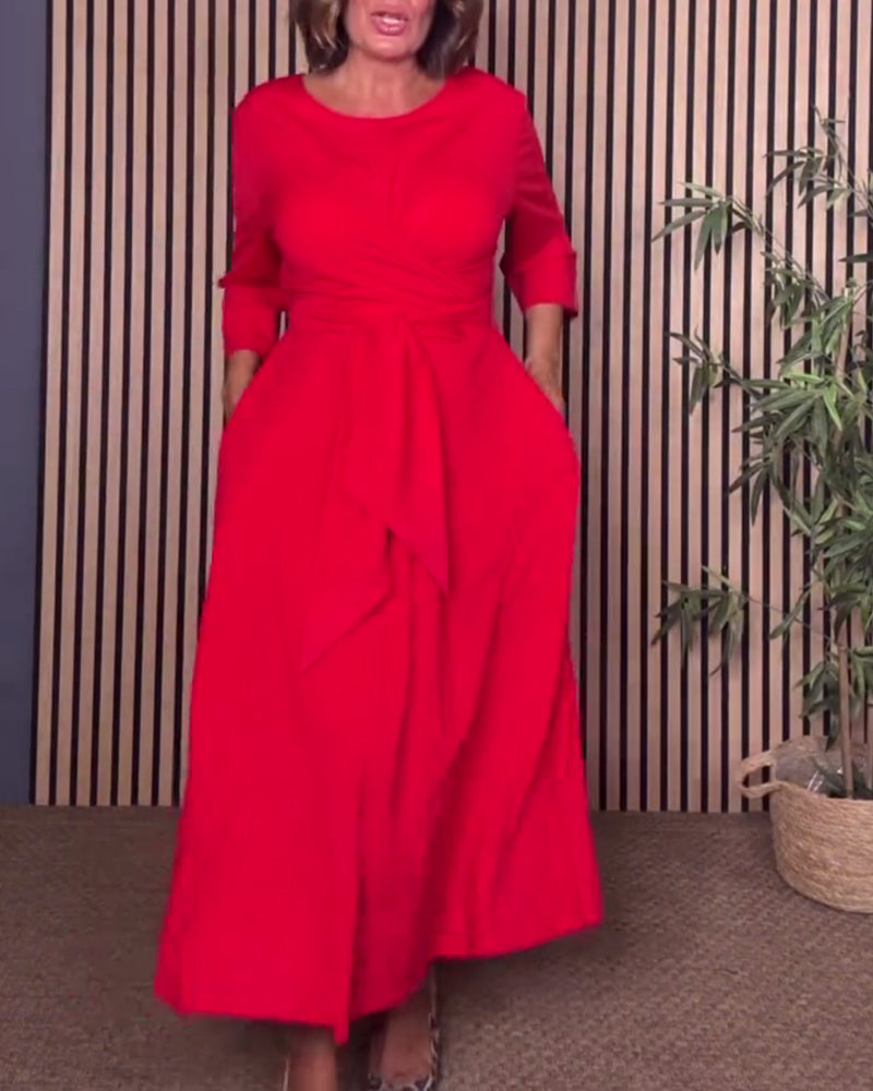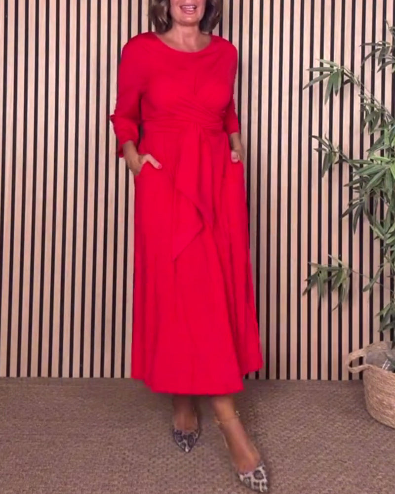 Casual Solid Color Round Neck Dress