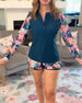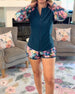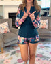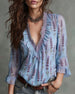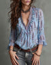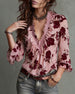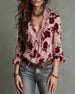 Ruffle V-Neck Rose Print Blouse