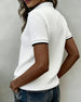 Waffle-Knit Button-Down Short-Sleeved Top