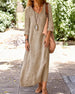 SPECIFICATIONS Style: Casual Material: Cotton Blends Dress Type: A-Line Dress Length: Maxi Neckline: V neck_V Pattern Type: Solid Color Sleeve Type: Regular sleeve Sleeve Length: Long Sleeve Fit Type: Regular Season: Spring,Summer,Fall Occasion: Daily Package Includes: 1 x Dress SIZE TABLE Size Bust Length CM INCH CM INCH S 92 3...