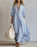 Casual Lapel Striped Long Dress