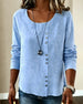 SPECIFICATIONS Top Type: Tops Style: Casual Material: Cotton Blends Occasion: Daily Neckline: U Neck_U Sleeve Type: Regular sleeve Sleeve Length: Long Sleeve Fit Type: Regular Season: Spring,Fall Details: Buttons Package Includes: 1 x Top SIZE TABLE Size Bust Length CM INCH CM INCH S 97 38.19 65 25.59 M 101 39.76 66.5 26.18 ...