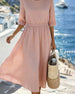 Half Sleeve Solid Color Loose Cotton Dress